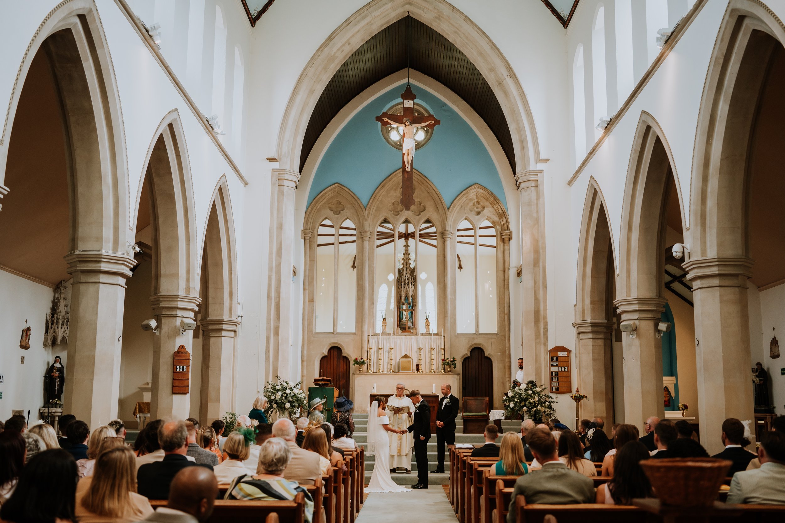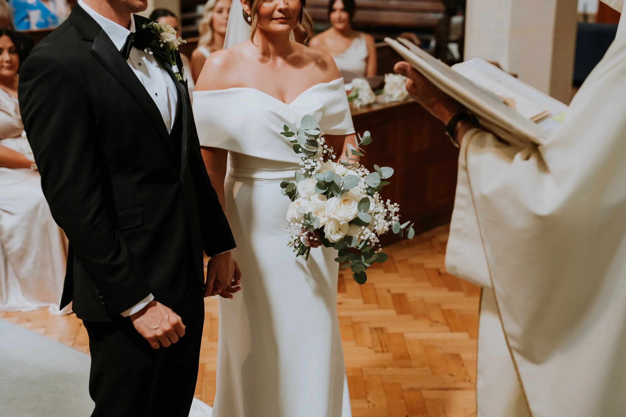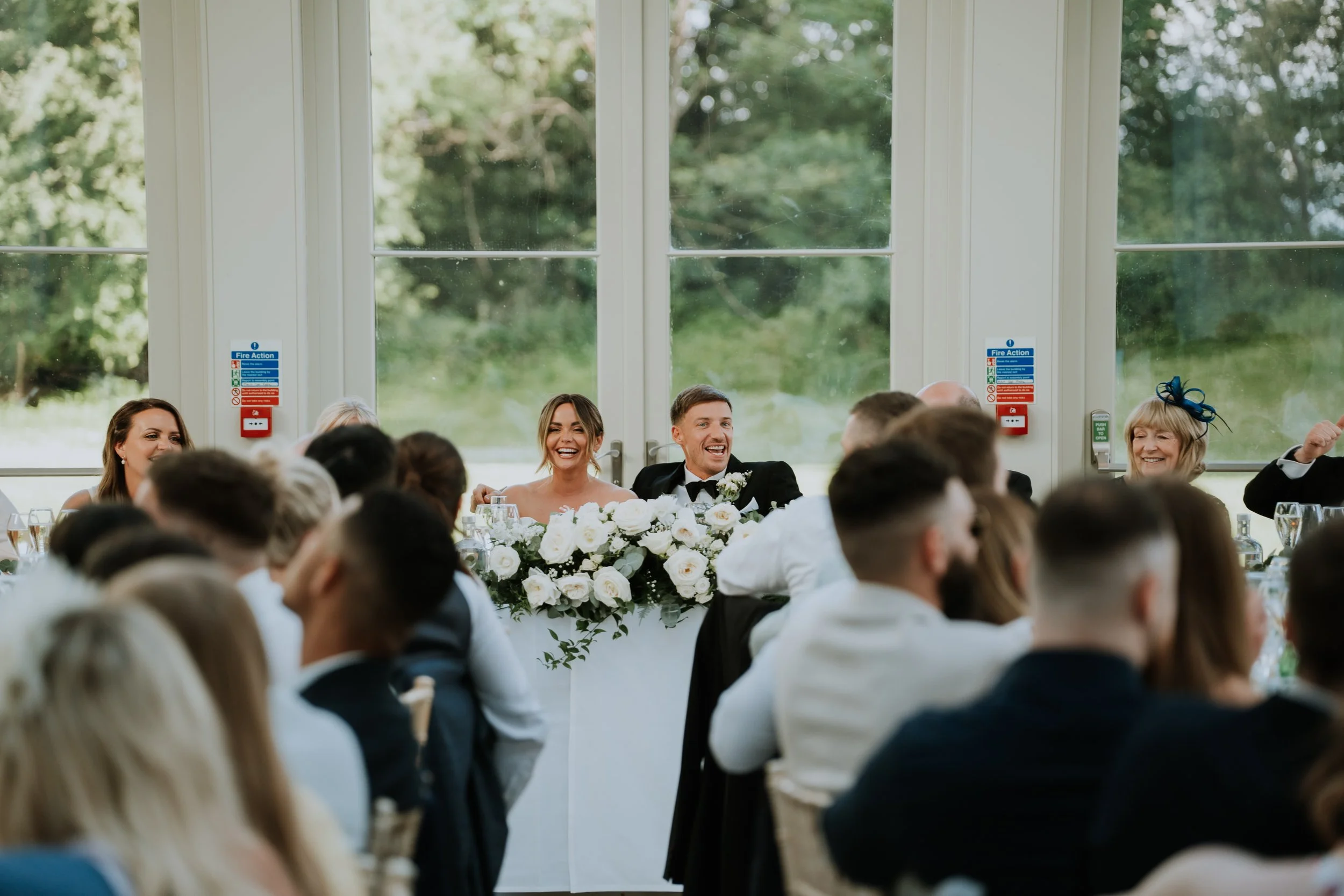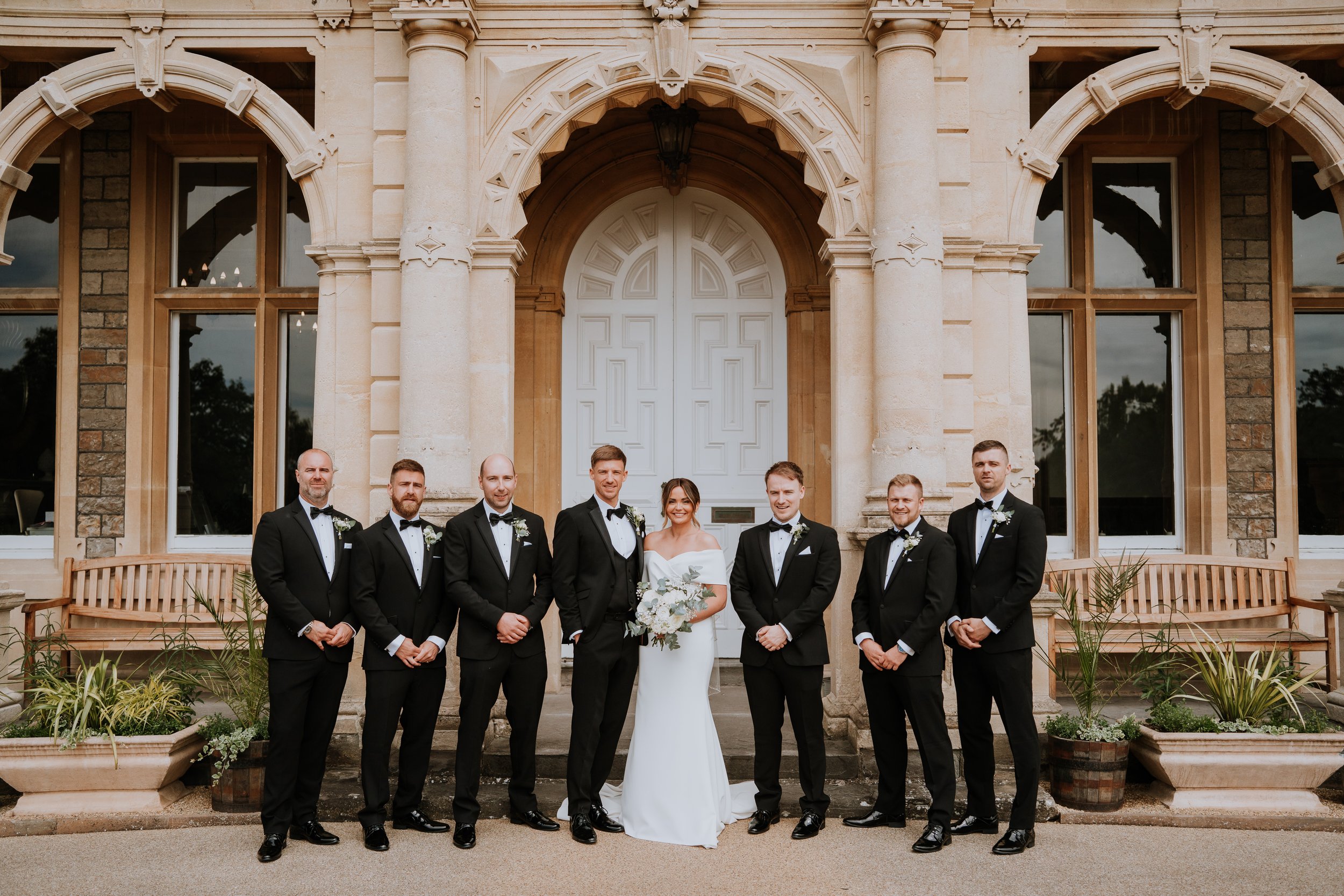 Floral highlights included statement urn arrangements for the ceremony, moved to the Wedding Breakfast along with a long, trailing table runners of greenery and matching flowers — adding a sense of natural movement and refined simplicity. Every bloom was chosen to complement the setting, resulting in a celebration that felt both classic and effortlessly beautiful.