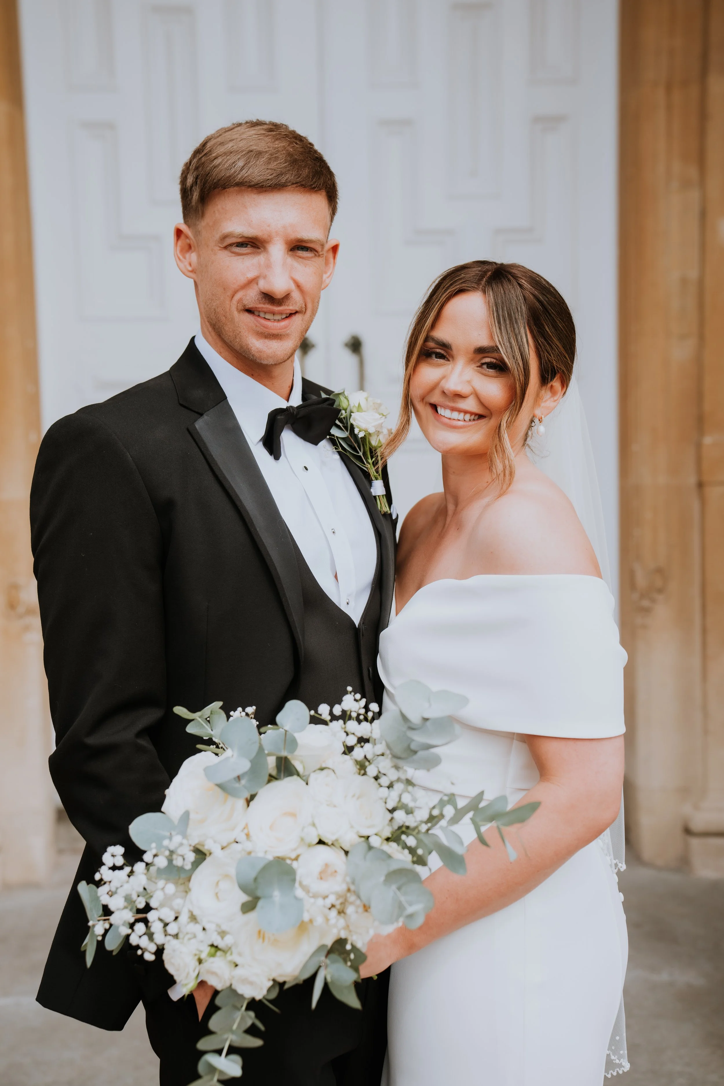 Set within the romantic surroundings of this countryside venue, this wedding embraced a timeless white and green colour palette. Soft garden roses, airy eucalyptus, and textured seasonal foliage created a look that was both fresh and elegant.